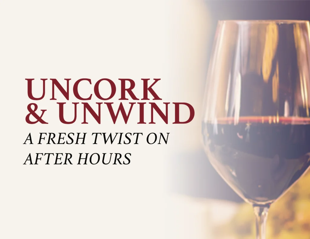 We’re taking our traditional Business After Hours and giving it a “vintage” upgrade. If you’ve had a long week of spreadsheets and strategy, it’s time to Uncork & Unwind.